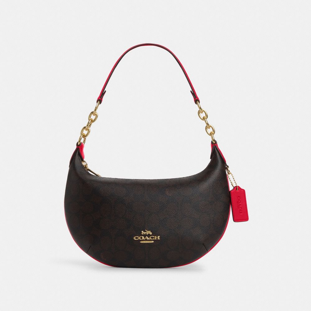 The Payton Hobo Bag is designed to complete any outfit and carry your main essentials. Crafted of Signature coated canvas and smooth leather, it feels as good as it looks. With a strap featuring an 8.25" drop, it sits comfortably on your shoulder, while the inside multifunction pocket keeps your keys and card case organized. This silhouette fits an iPhone (up to 15 Max) and has a convenient and secure zip-top closure. For a touch of shine, a chain detail completes the strap, making this bag an easy go-to when you want to elevate your look.