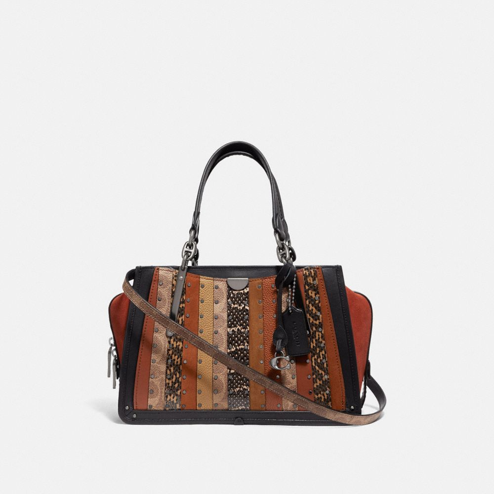 Bolso Dreamer Con Rayas De Patchwork En Lona De Firma Y Detalle De Piel De Serpiente
