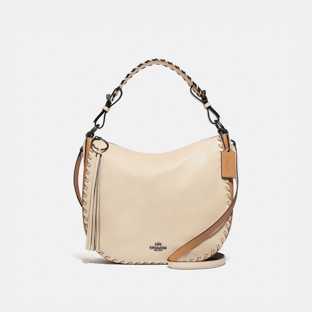 Whip smart. Hand-worked leather threads woven in a Western-inspired whipstitch add a fresh attitude.