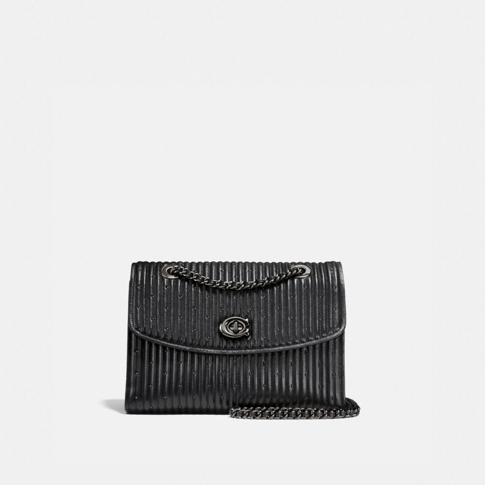 Estructurado y ligero, el Parker es un bolso versátil que combina la elegancia de la parte alta de la ciudad con la sencillez del centro. Este estilo está elaborado en piel de napa acolchada con intrincados detalles con remaches. Convierte la correa de cadena y piel de larga a corta con dos asas.