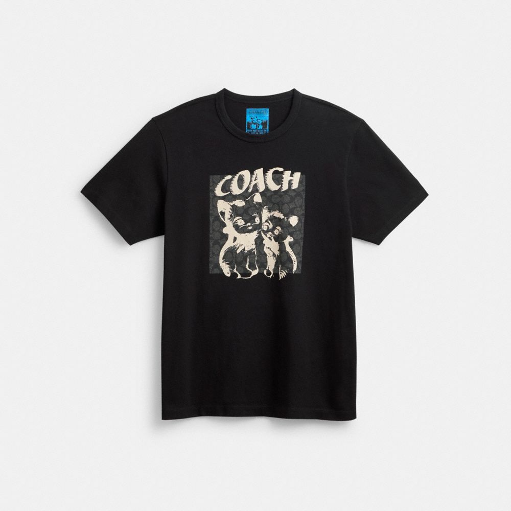 Presentamos Lil Nas X Drop, una edición diseñada por Coach y comisariada por el embajador de Coach Lil Nas X, que celebra su enfoque único y expresivo del estilo. Esta camiseta de algodón de corte clásico presenta un gráfico inspirado en los pósteres de raves underground de los 90 y un guiño divertido a sus nuevos gatos.