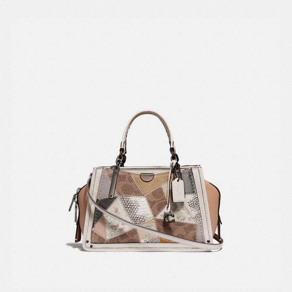 Not your grandmother's patchwork. This reconstructed take on quilting incorporates a rich mix of Coach leathers and materials.