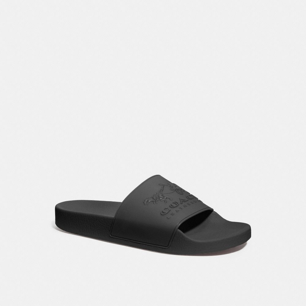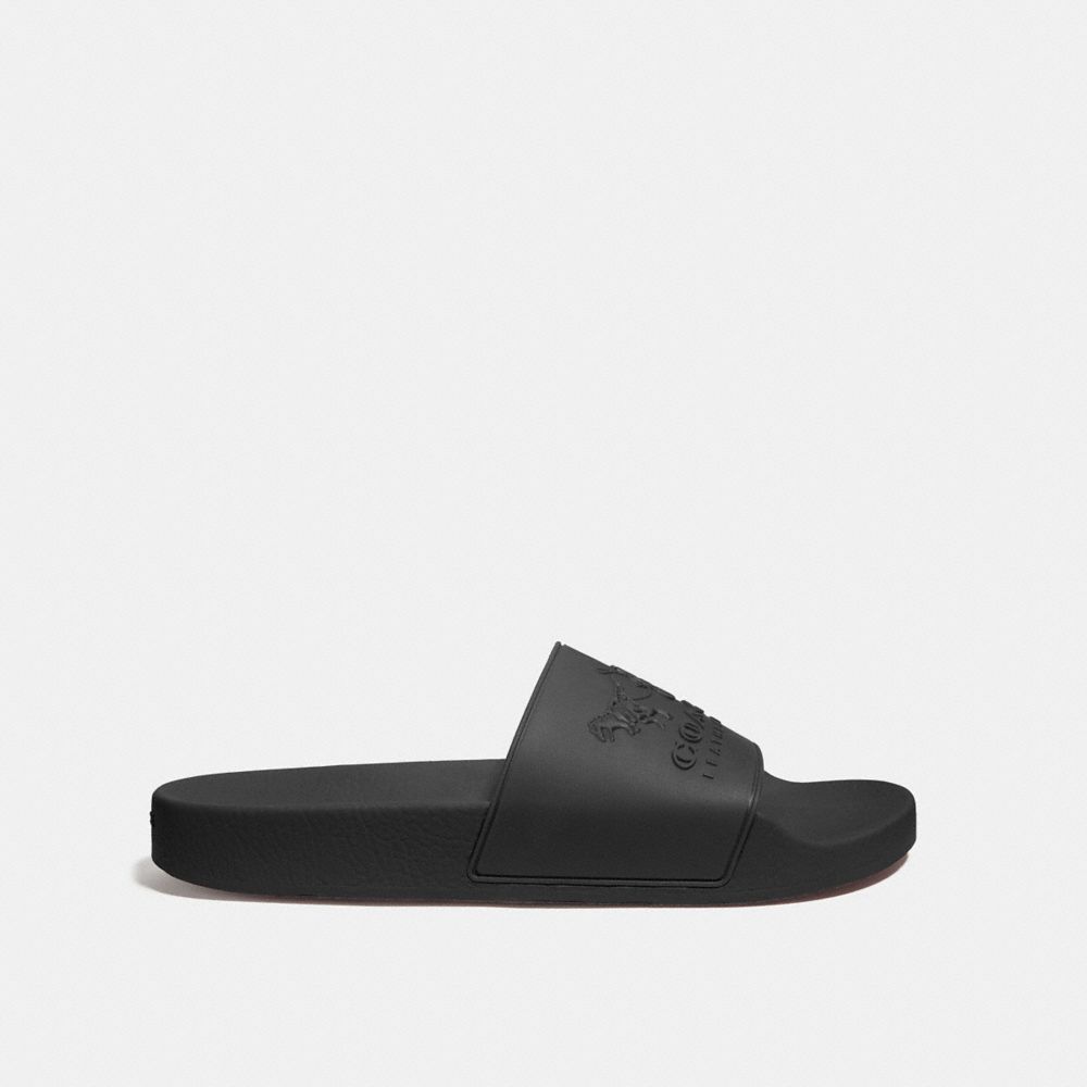 A summer essential, this rubber slide is great beachside and poolside. It's embossed with a playful twist on our Horse and Carriage icon featuring mascot Rexy.