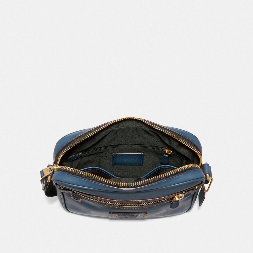El Dylan está inspirado en los bolsos de vuelo de los años 70. Elaborada con piel pulida teñida a mano en denim azul, la cremallera multifunción y los bolsillos para documentos la convierten en un modelo bien organizado y de manos libres para viajar o trabajar. Está rematada con los mismos remaches y puntadas que aparecen en nuestros vaqueros.