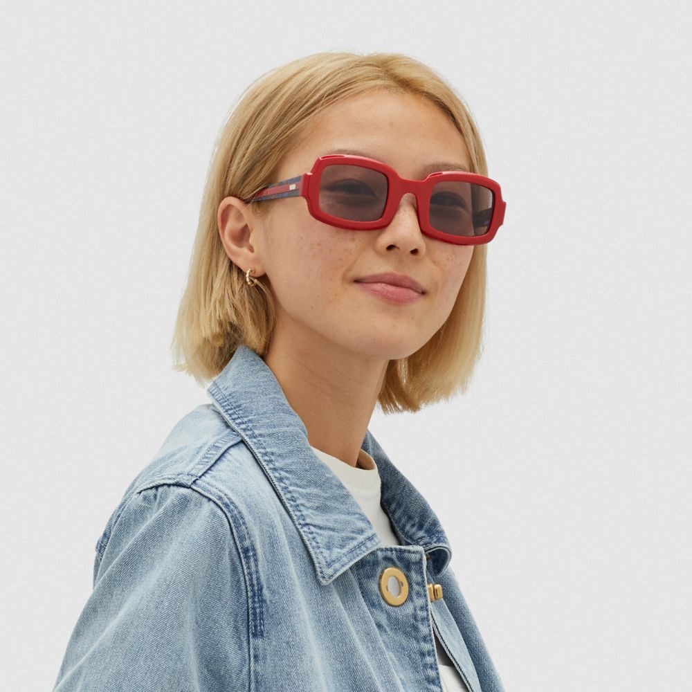 Inspiradas en los estilos rebeldes del surf punk de los años setenta, estas gafas de sol constituyen un claro manifiesto. La montura rectangular está acabada con lentes con protección contra rayos UV 100 por cien y nuestra firma para darle un toque icónico.