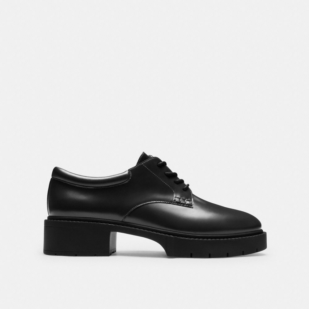 Nuestro derby Lyla de suave piel, una reinterpretación moderna de siluetas Oxford clásicas, cuenta con una suela acanalada de tacón grueso inspirada en los 90 para una sutil elevación y gran tracción. La silueta con lazada está acabada con una cómoda plantilla acolchada para llevarlo todo el día.