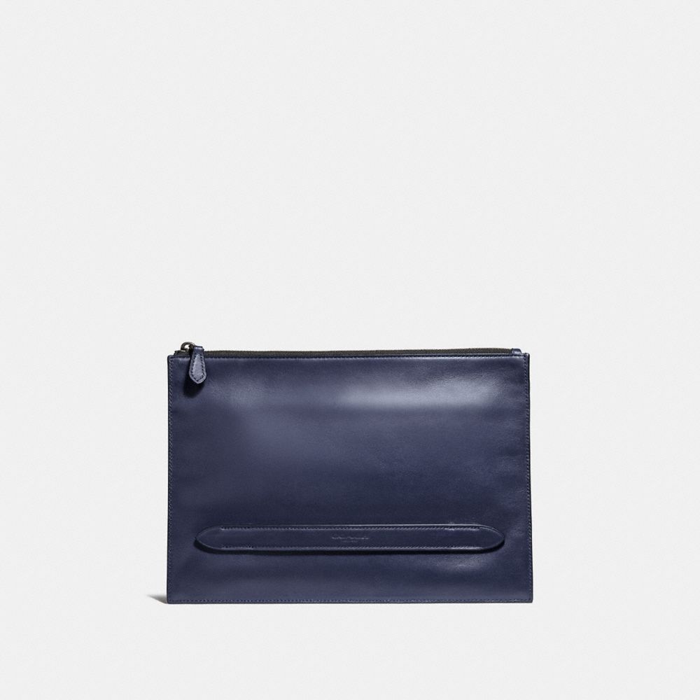 Confeccionada en refinada piel de ternero, esta bolsa estructurada está diseñada con una amplia base para mantenerse derecha incluso cuando está vacía. El compartimento central con cremallera mantendrá seguro tu iPad®, teléfono, bloc de notas y otros accesorios, mientras que los tickets, tus documentos de identidad, el efectivo y las tarjetas pueden meterse en el bolsillo con cremallera delantero para un fácil acceso.