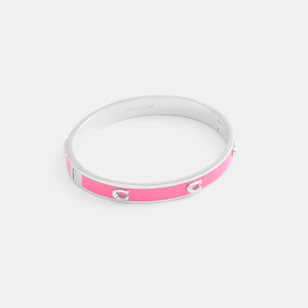 Este brazalete con bisagra de esmalte brillante cuenta con detalles de firma que le dan un toque clásico. Llévala sola o con otras pulseras.