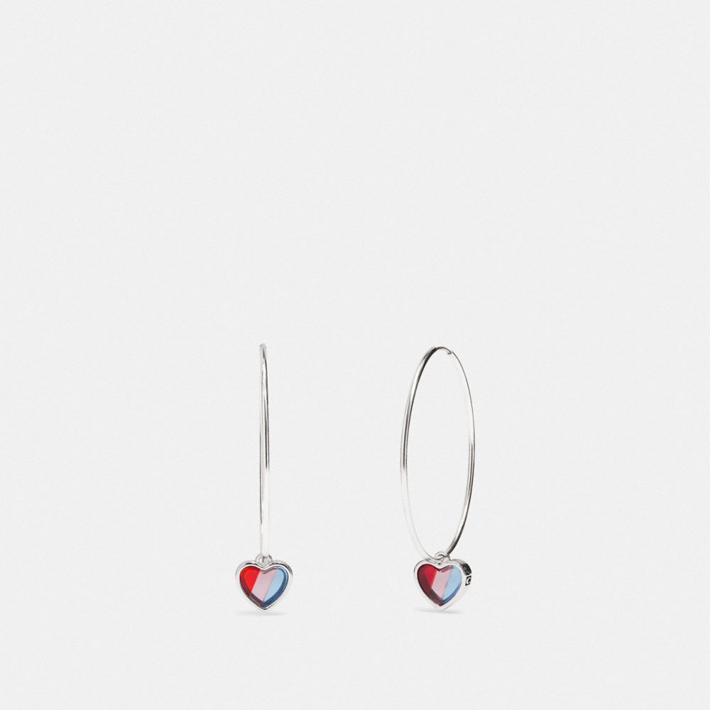 Fall in love with these tri-color heart earrings. The dangling charms add a playful accent to the minimalist hoops.
