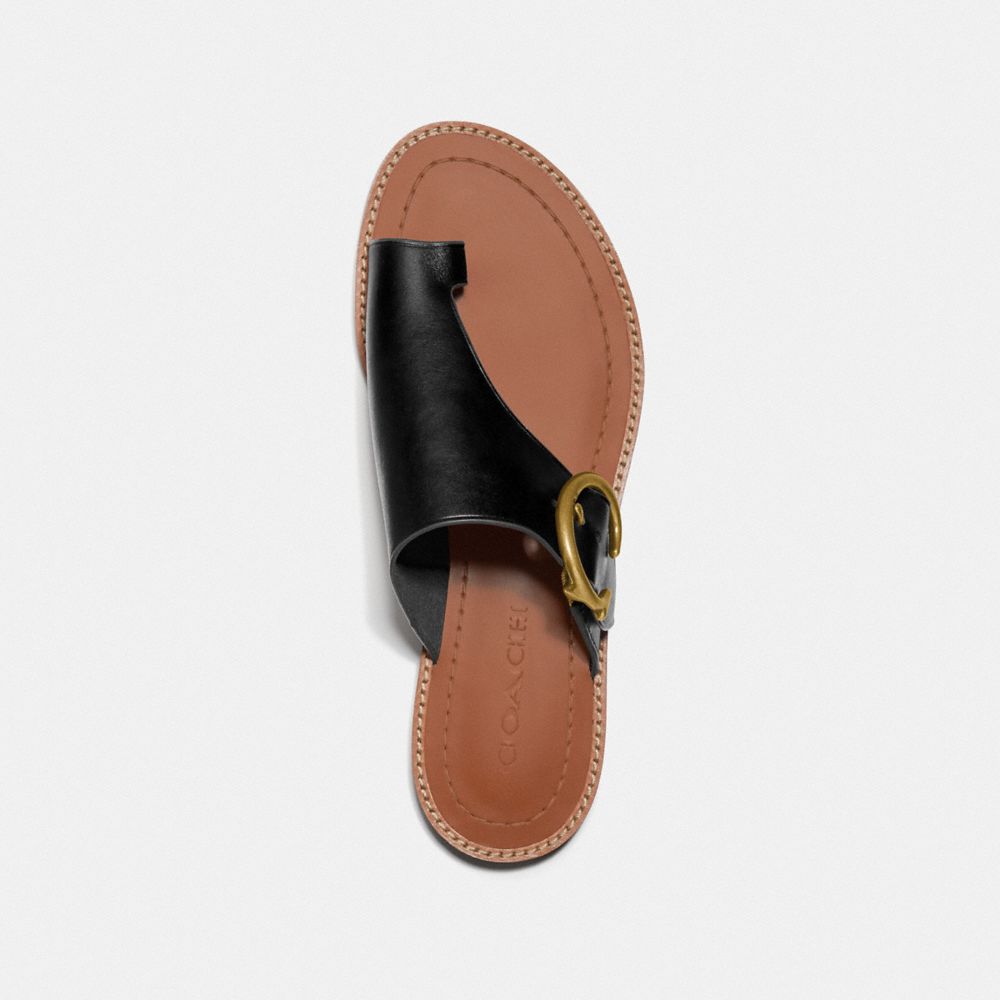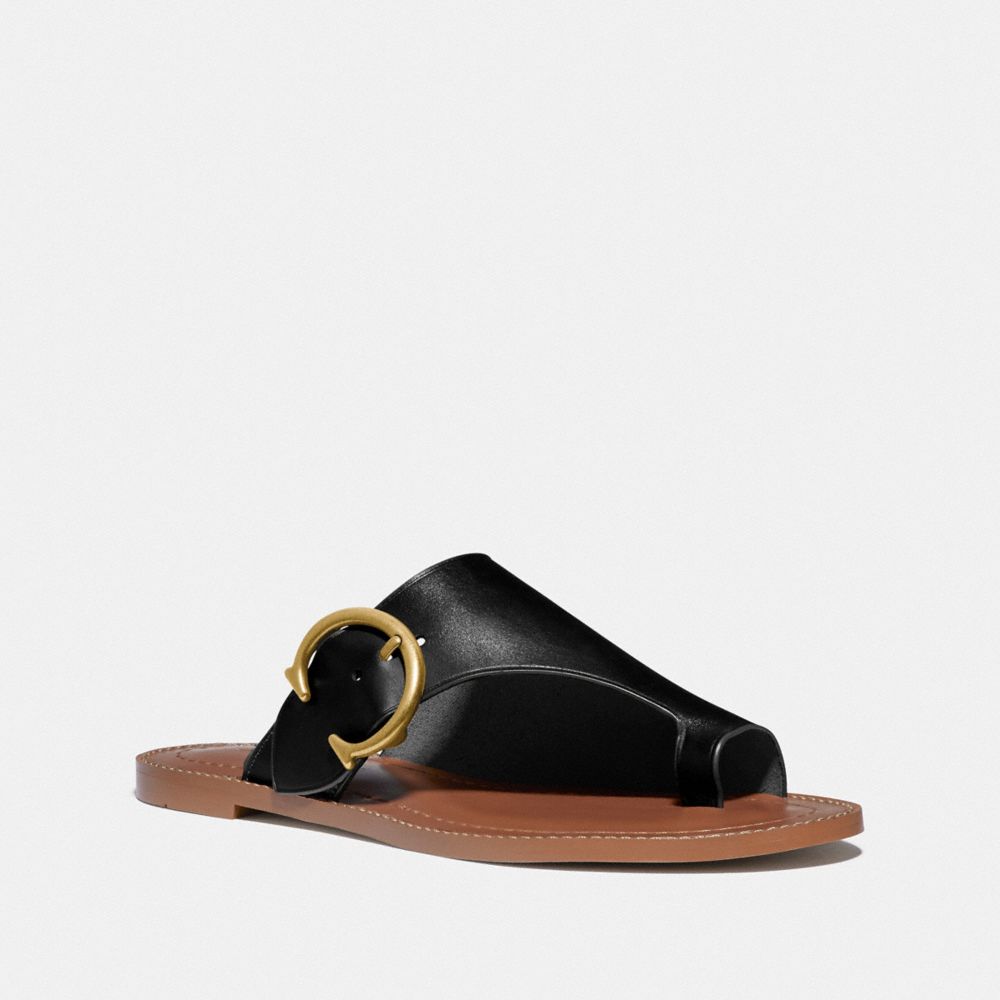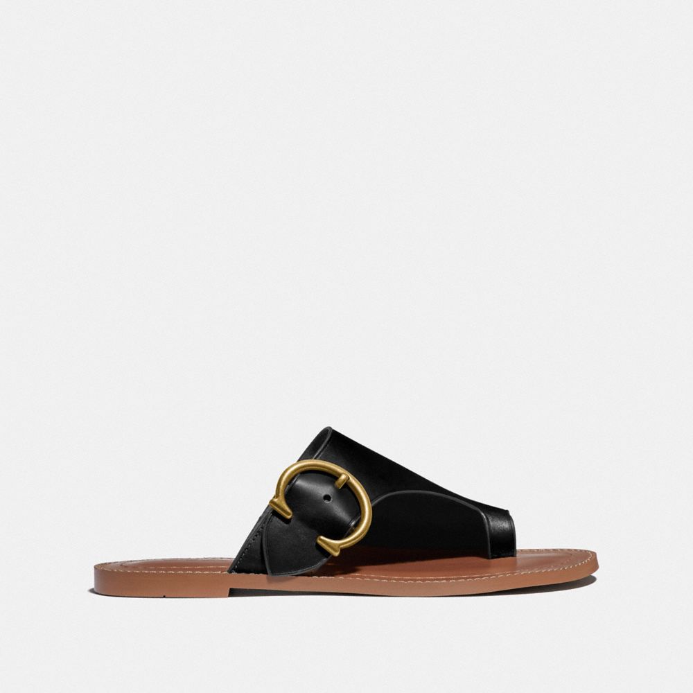 Fabricada en piel ultrasuave, nuestra sandalia Luca luce un diseño sencillo y muy ponible. Su estilo tipo chancla está acabado con nuestra hebilla Coach para darle un toque clásico.