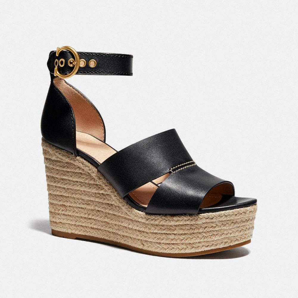 Siente la elevación con nuestras cómodas sandalias de cuña Isla. El diseño de piel lisa está acabado con una correa al tobillo e incluye nuestra hebilla Coach para un ajuste seguro.