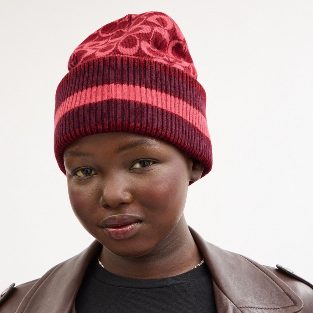 Nuestras rallas varsity de firma y deportivas combinan en este cálido gorro. Confeccionado en lana de merino, añade el estilo de herencia Coach a cualquier look