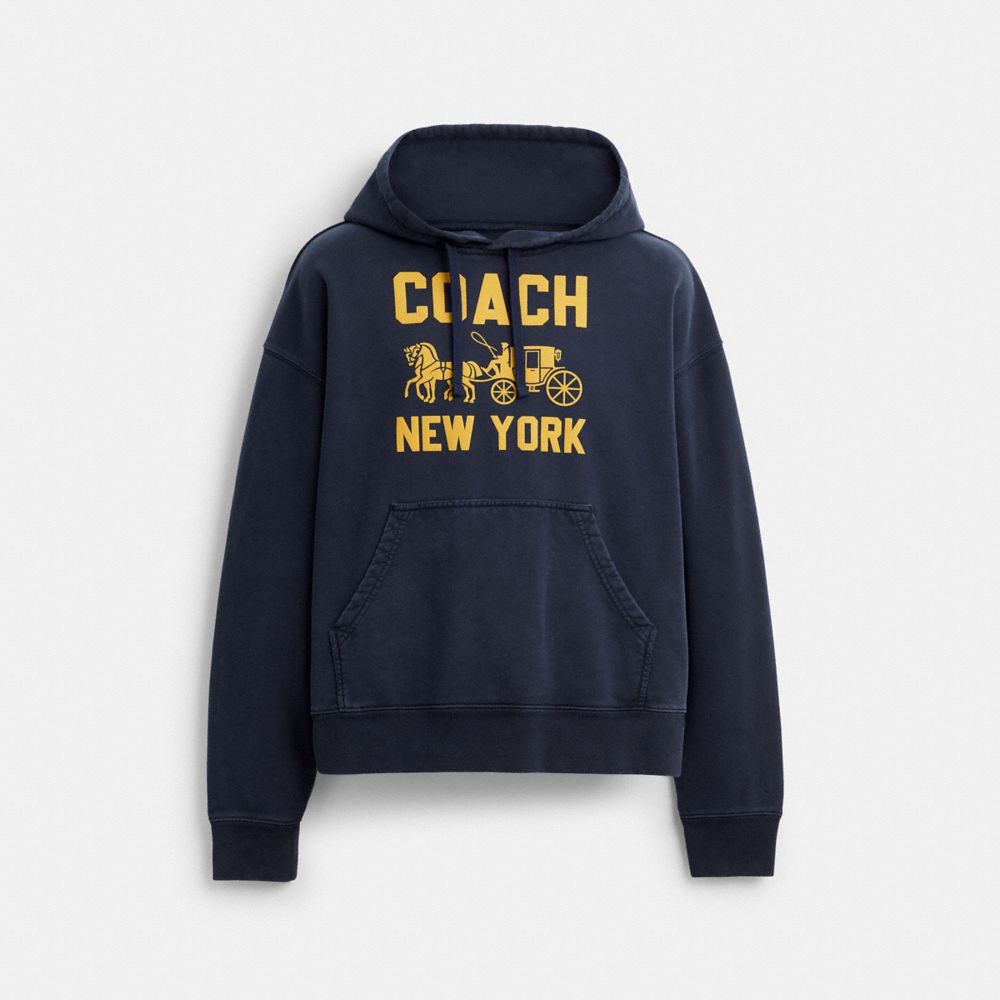 Esta sudadera de algodón de corte holgado está estampada con un gráfico de Coach con nuestro icónico motivo del carruaje de caballos. Esta sudadera con capucha, lavada para tener un tacto suave y natural, cuenta con un bolsillo tipo canguro y un ribete acanalado.