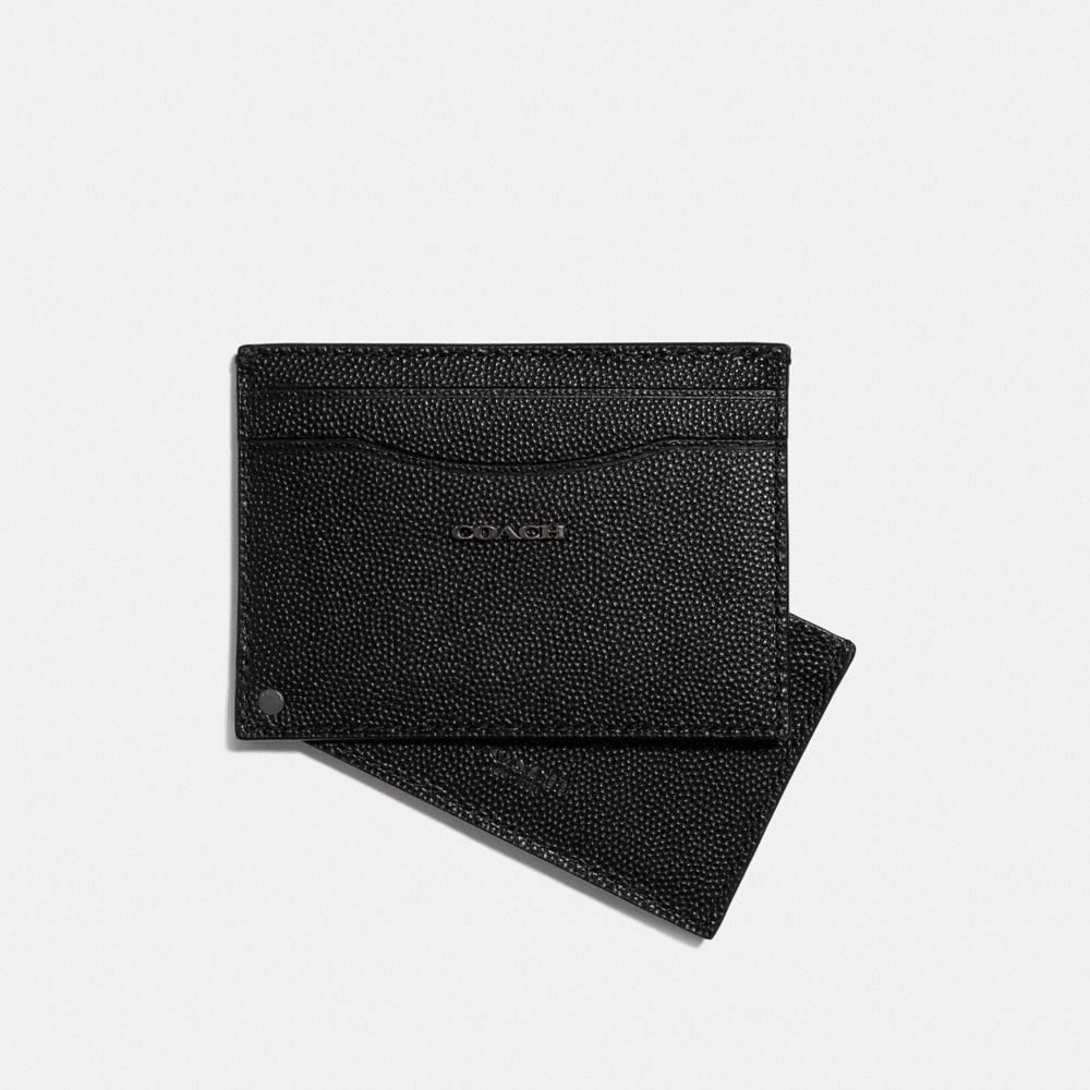 Este elegante tarjetero cuenta con una ventanita para el documento de identidad que pivota desde la ranura central para guardar las tarjetas de acreditación de la oficina, del gimnasio o los abonos transporte. Confeccionado en piel caviar, suave y resistente a los arañazos, organiza perfectamente tus tarjetas más usadas para un fácil acceso.