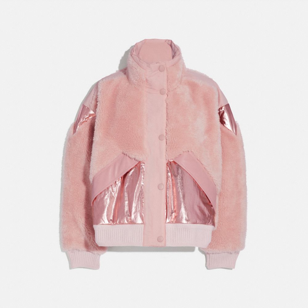 Acurrúcate en esta chaqueta increíblemente suave y calentita. Acabada con puños y bajo elásticos para mantener el calor, su silueta deportiva arrugada cuenta con cuello de chimenea alto y está fabricada en una mezcla de patchwork de lana de fibra alta, piel suave y ligero nailon metalizado.