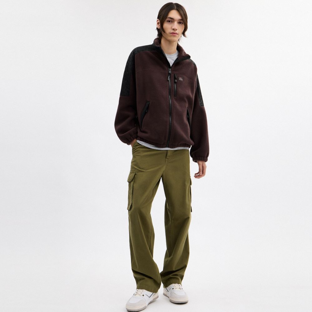 Cozy, warm and oh-so-soft, this zip-front jacket is crafted of plush high-pile fleece and our lightweight Signature nylon. The sporty silhouette has a high funnel collar, elasticized cuffs and hem to keep out the chill and zip pockets to securely hold essentials.